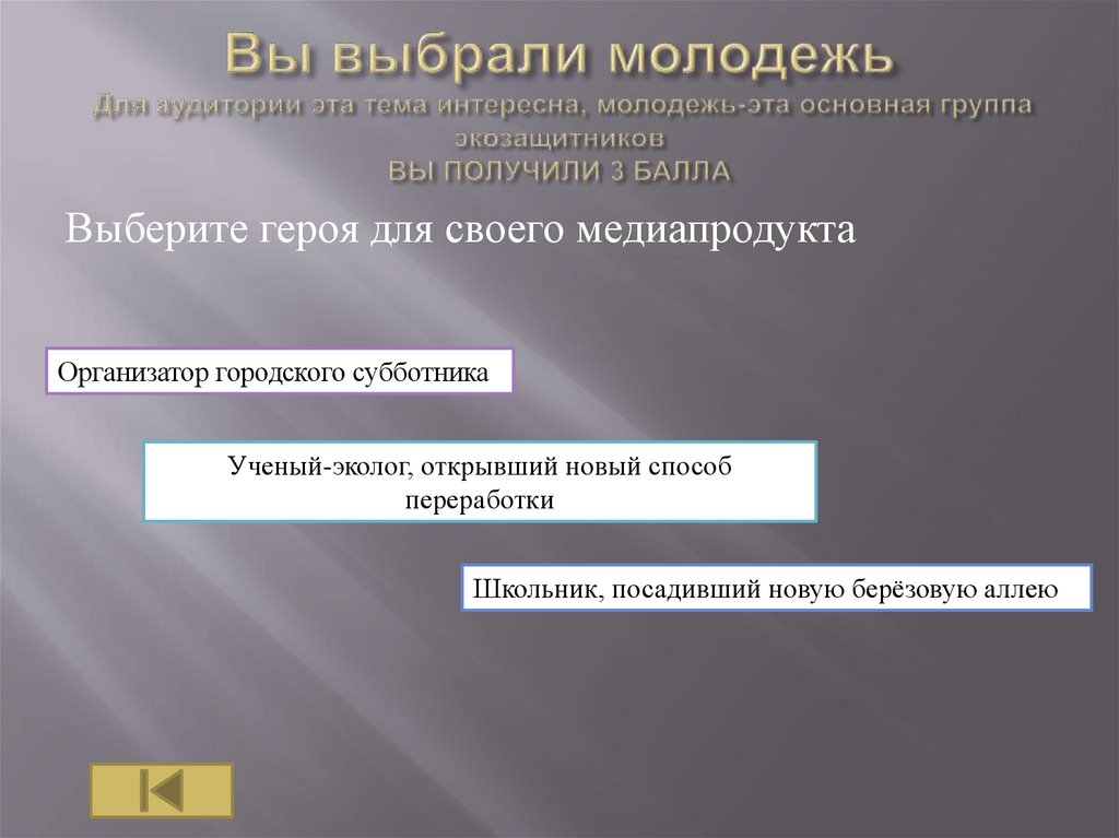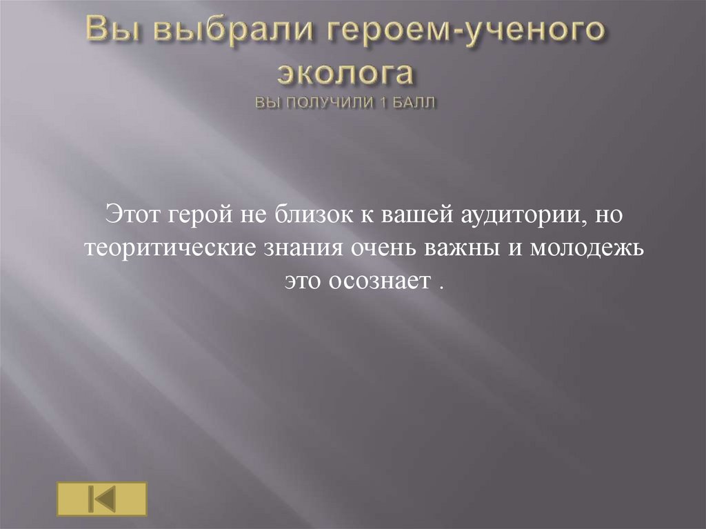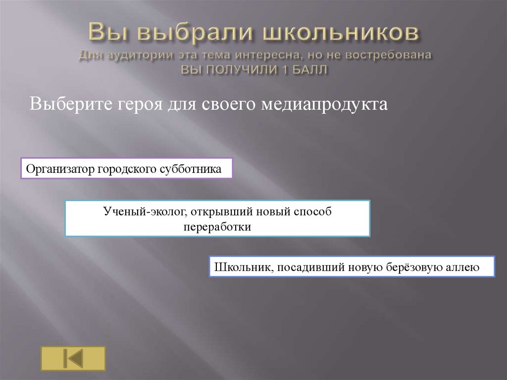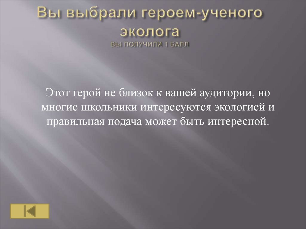 Этот герой не близок к вашей аудитории, номногие школьники интересуются экологией и