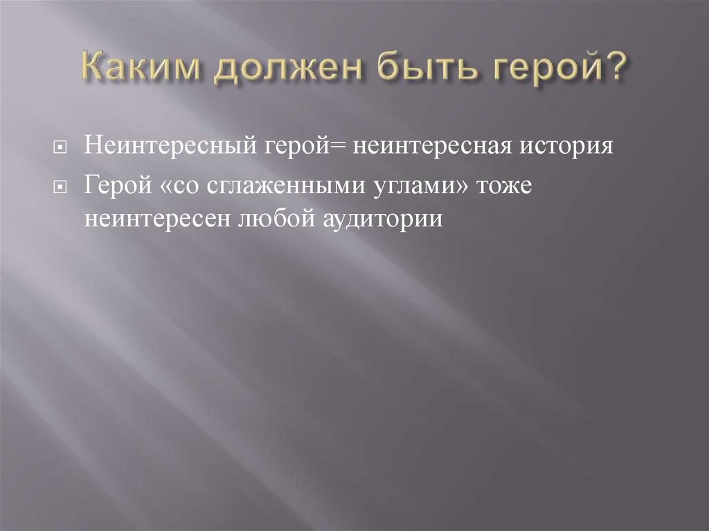Неинтересный герой= неинтересная историяГерой «со сглаженными углами» тоже