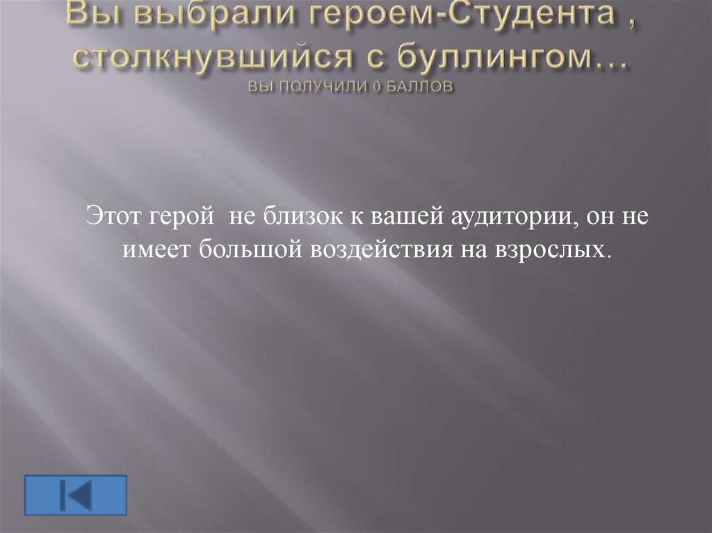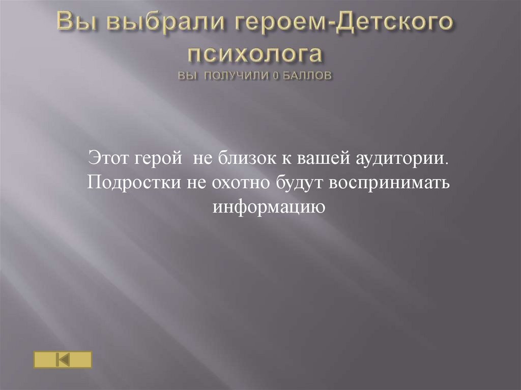 Этот герой не близок к вашей аудитории, он неимеет большой воздействия на взрослых.