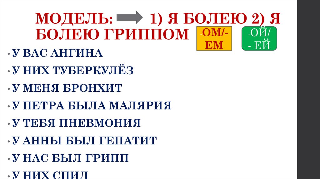 МОДЕЛЬ:1) Я БОЛЕЮ 2) Я