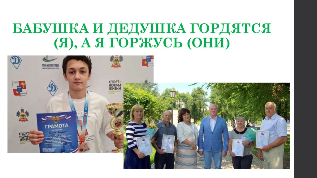 БАБУШКА И ДЕДУШКА ГОРДЯТСЯ(Я), А Я ГОРЖУСЬ (ОНИ)