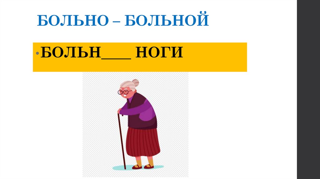 БОЛЬНО – БОЛЬНОЙ• БОЛЬН____
