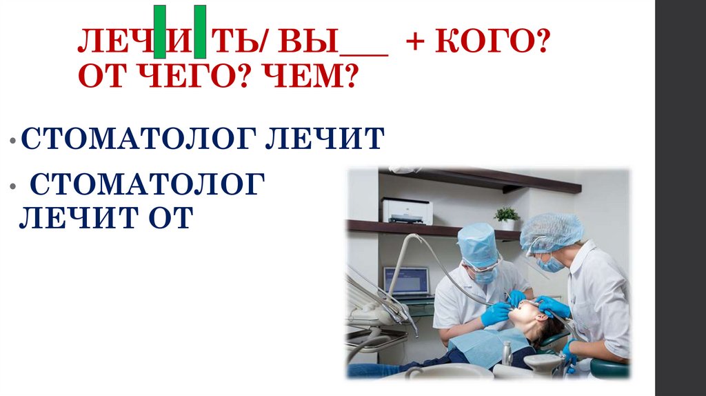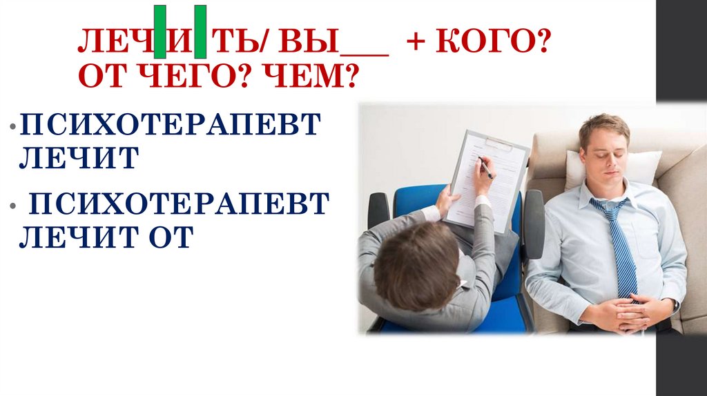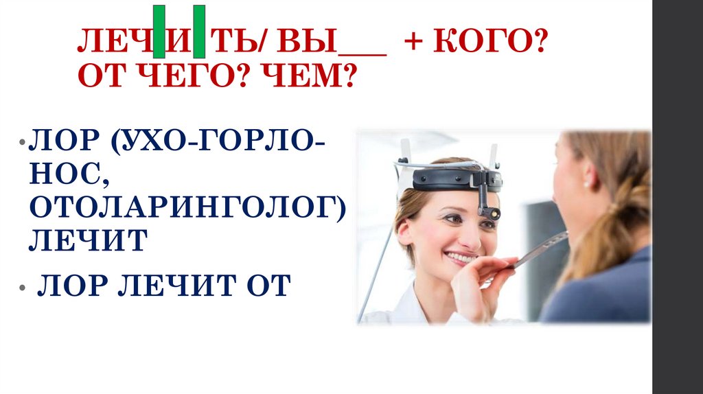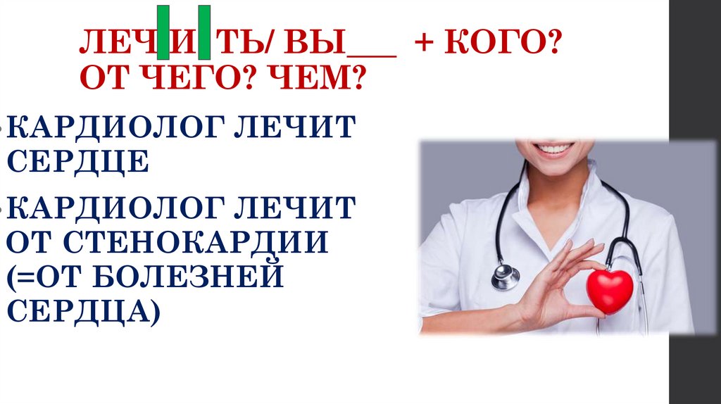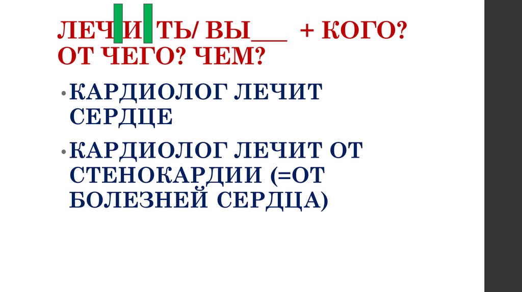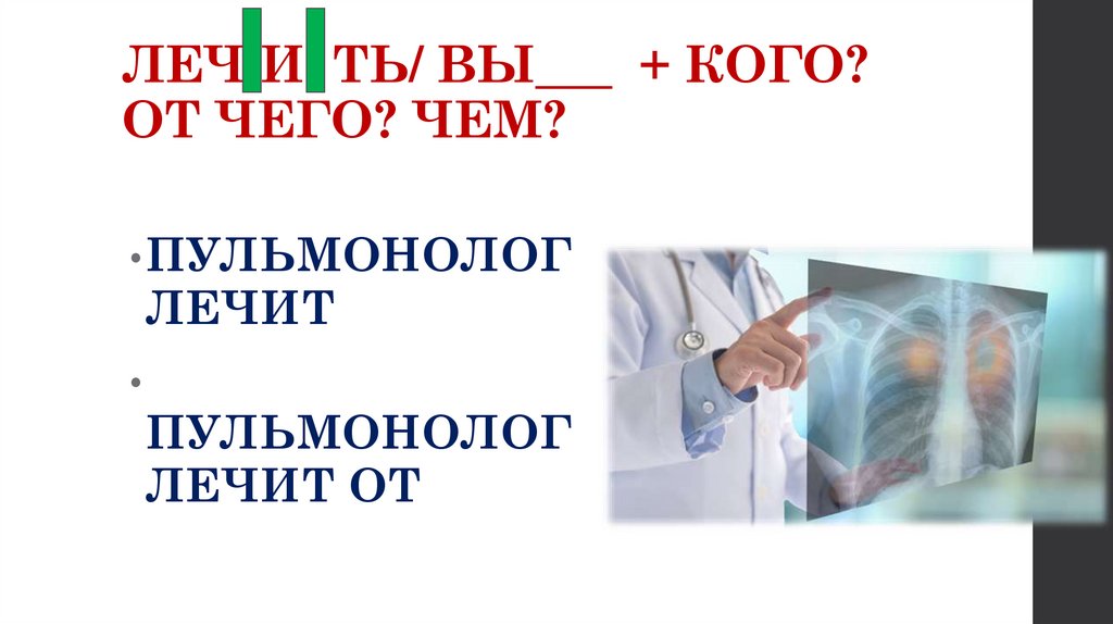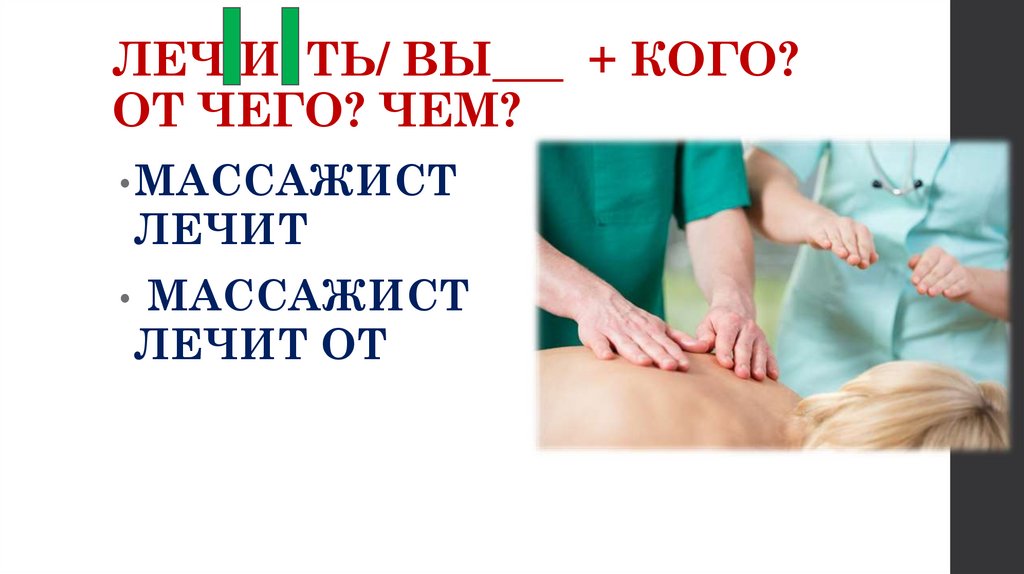 ЛЕЧ И ТЬ/ ВЫ___ + КОГО?ОТ ЧЕГО? ЧЕМ?
