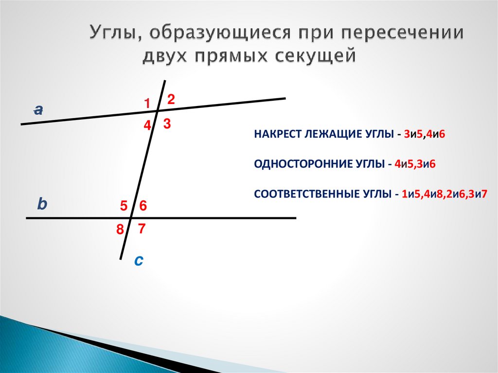 СООТВЕТСТВЕННЫЕ УГЛЫ - 1И5,4И8,2И6,3И7