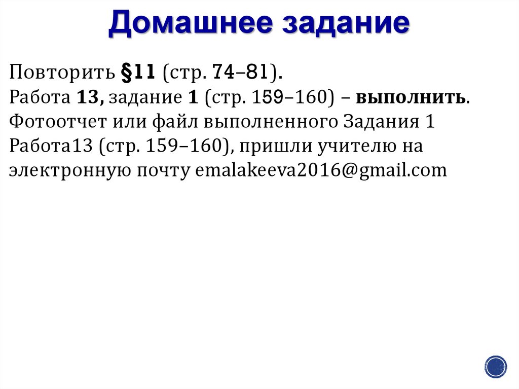 Домашнее заданиеПовторить §11 (стр. 74–81).