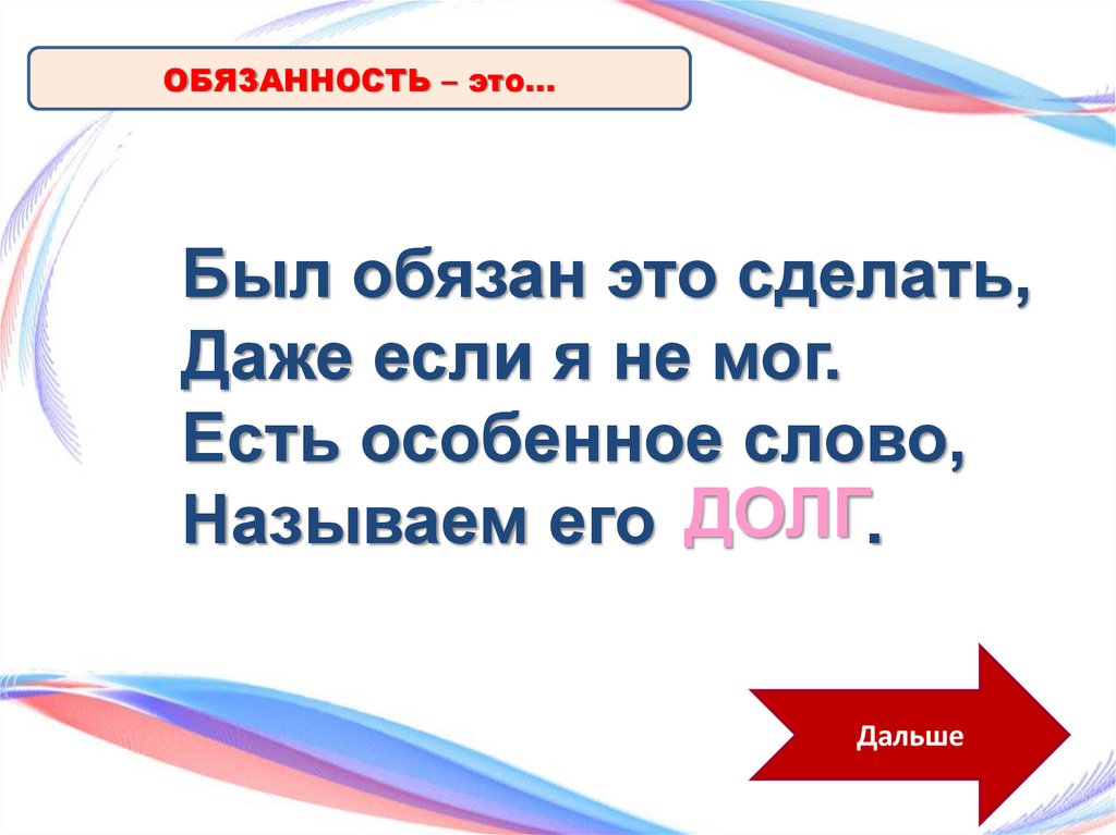 ОБЯЗАННОСТЬ – это…Был обязан это сделать,