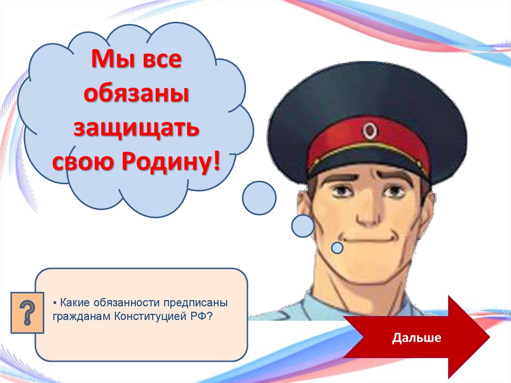 Обязанность защищать ОтечествоЩелкнуть мышкой по отличию на нижней части картинки