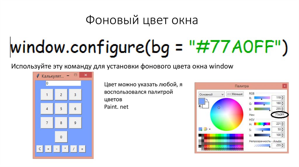 Фоновый цвет окнаИспользуйте эту команду для установки фонового цвета окна window