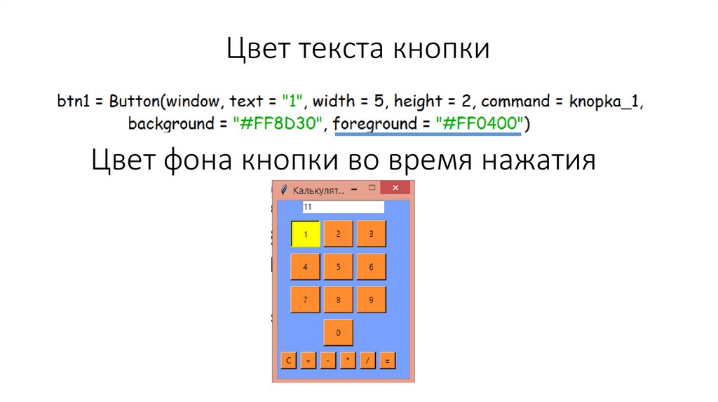 Цвет текста кнопкиЦвет фона кнопки во время нажатия