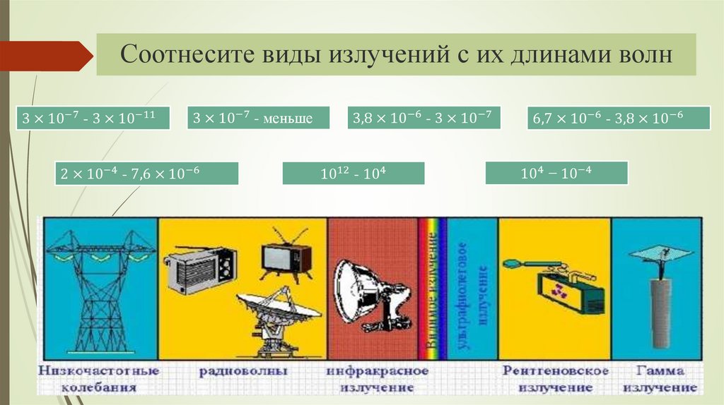 Соотнесите виды излучений с их длинами волн