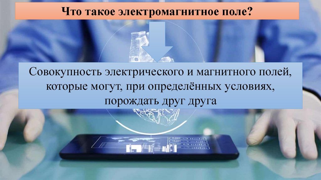 Что такое электромагнитное поле?Совокупность электрического и магнитного полей,