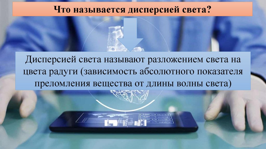 Что называется дисперсией света?Дисперсией света называют разложением света на