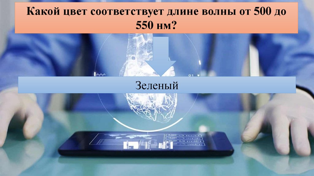 Какой цвет соответствует длине волны от 500 до550 нм?