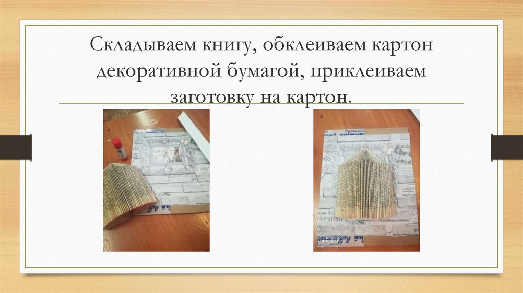 Складываем книгу, обклеиваем картондекоративной бумагой, приклеиваем