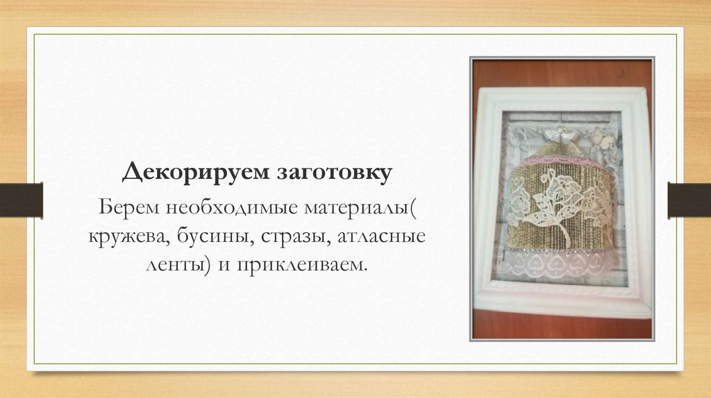 Декорируем заготовкуБерем необходимые материалы(