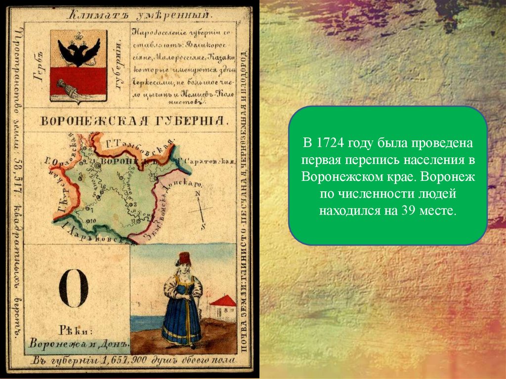 На протяжении всего XVIII векаВоронежская губерния превращалась в