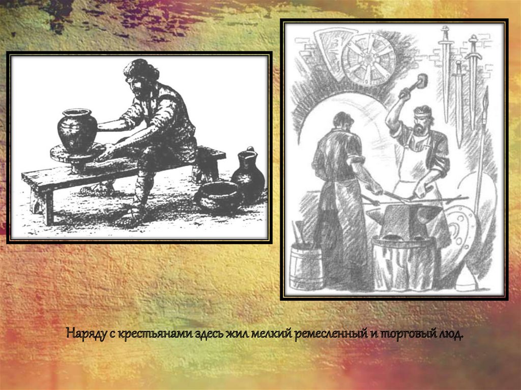 Наряду с крестьянами здесь жил мелкий ремесленный и торговый люд.12.