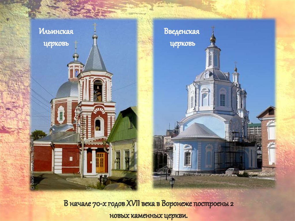 В начале 70-х годов XVII века в Воронеже построены 2новых каменных церкви.