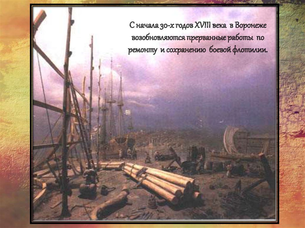 С начала 30-х годов XVIII века в Воронежевозобновляются прерванные работы по