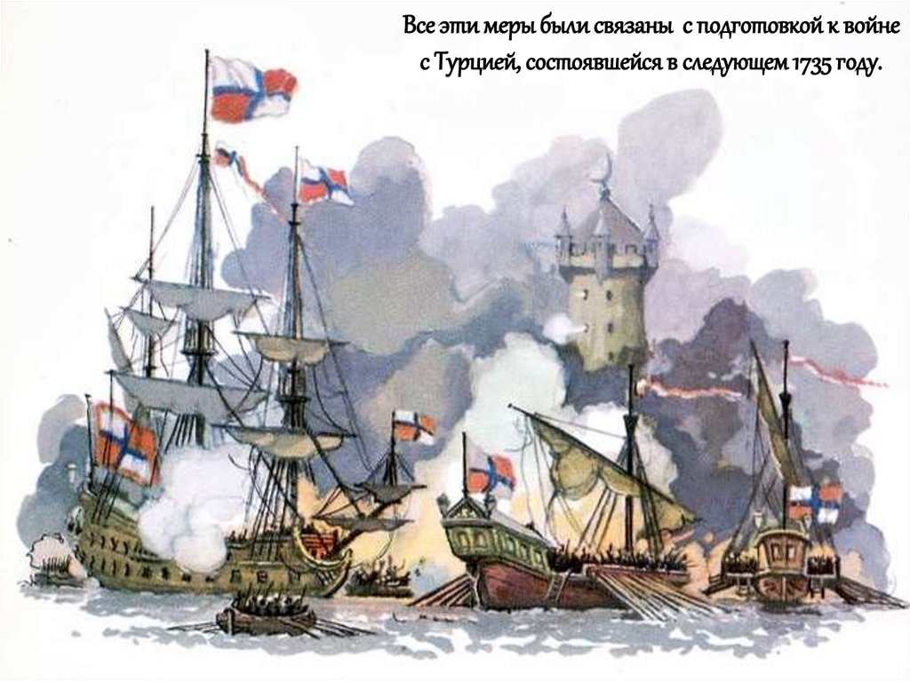 Все эти меры были связаны с подготовкой к войнес Турцией, состоявшейся в следующем 1735 году.