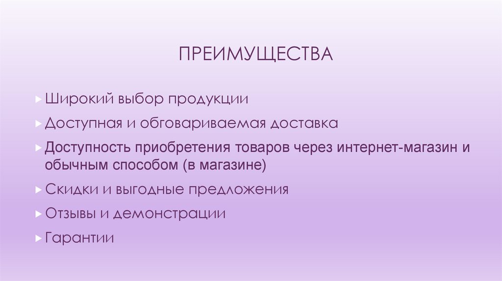ПРЕИМУЩЕСТВАШирокий
