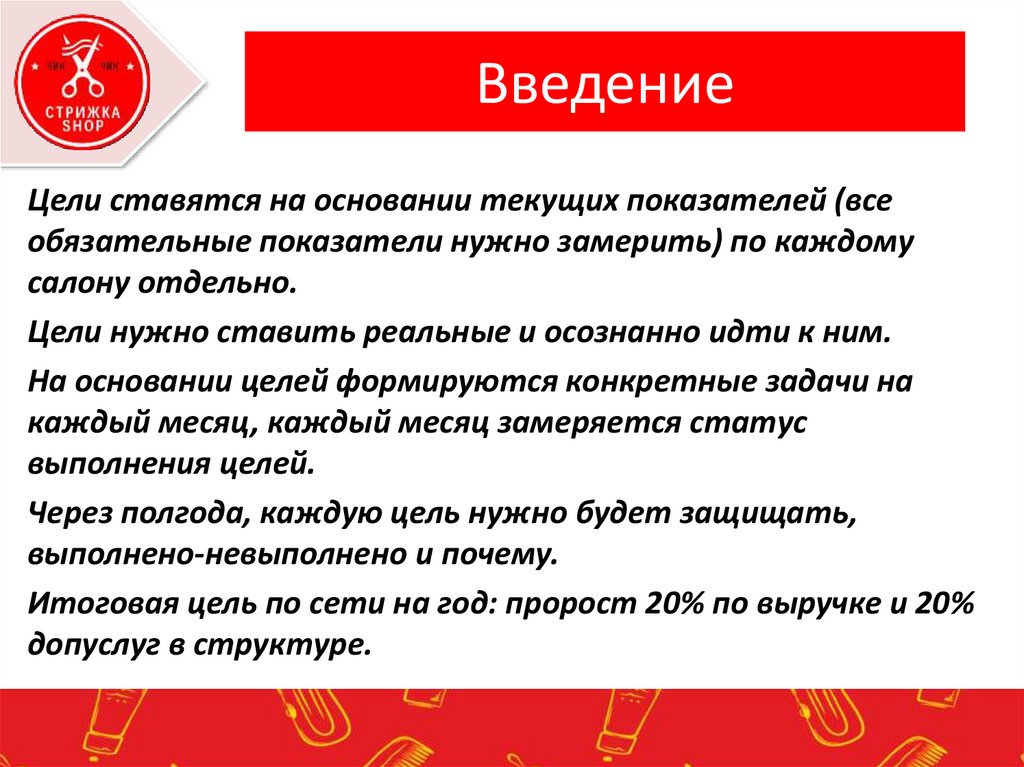 ВведениеЦели ставятся на основании текущих показателей (все