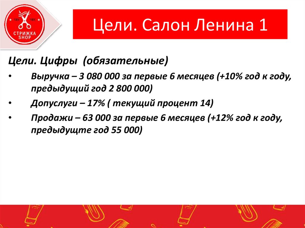 Цели. Салон Ленина 1Цели. Цифры (обязательные)