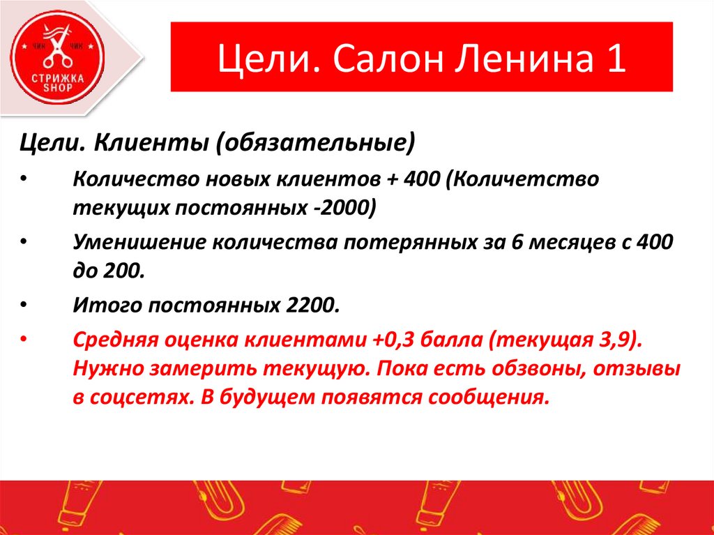 Цели. Салон Ленина 1Цели. Клиенты (обязательные)