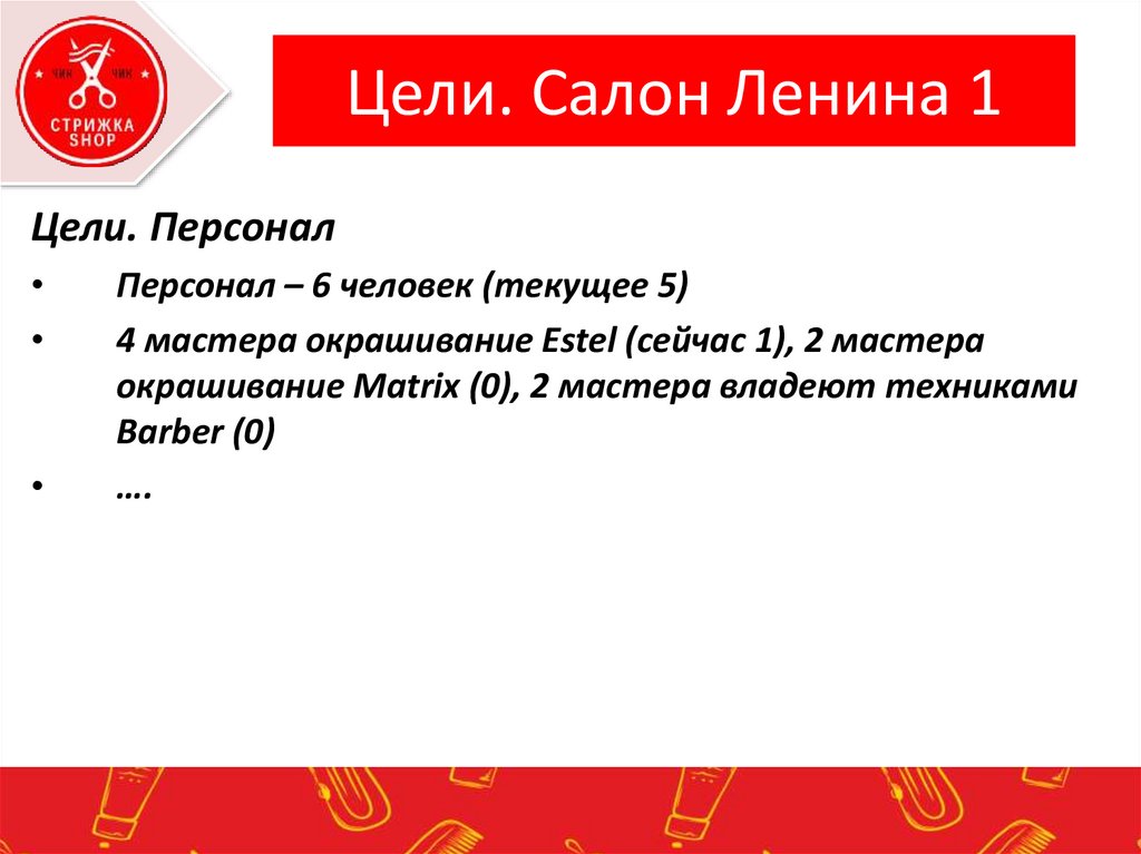 Цели. Салон Ленина 1Цели. Персонал