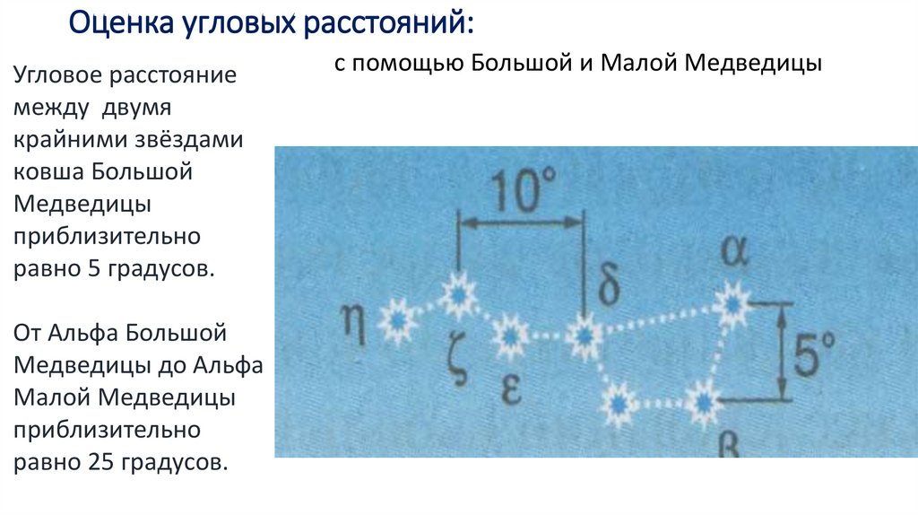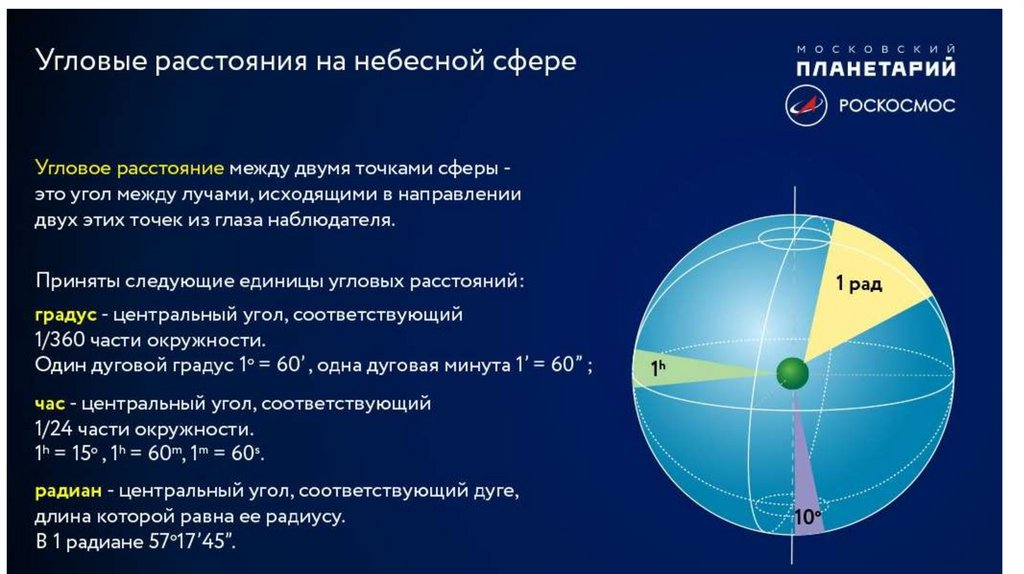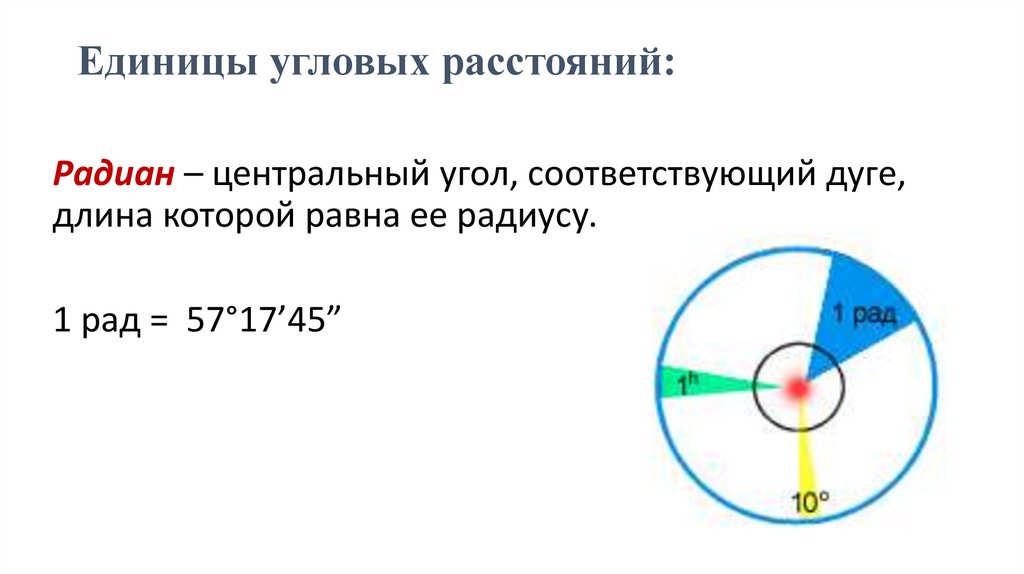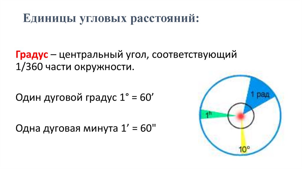 Единицы угловых расстояний:Градус – центральный угол, соответствующий