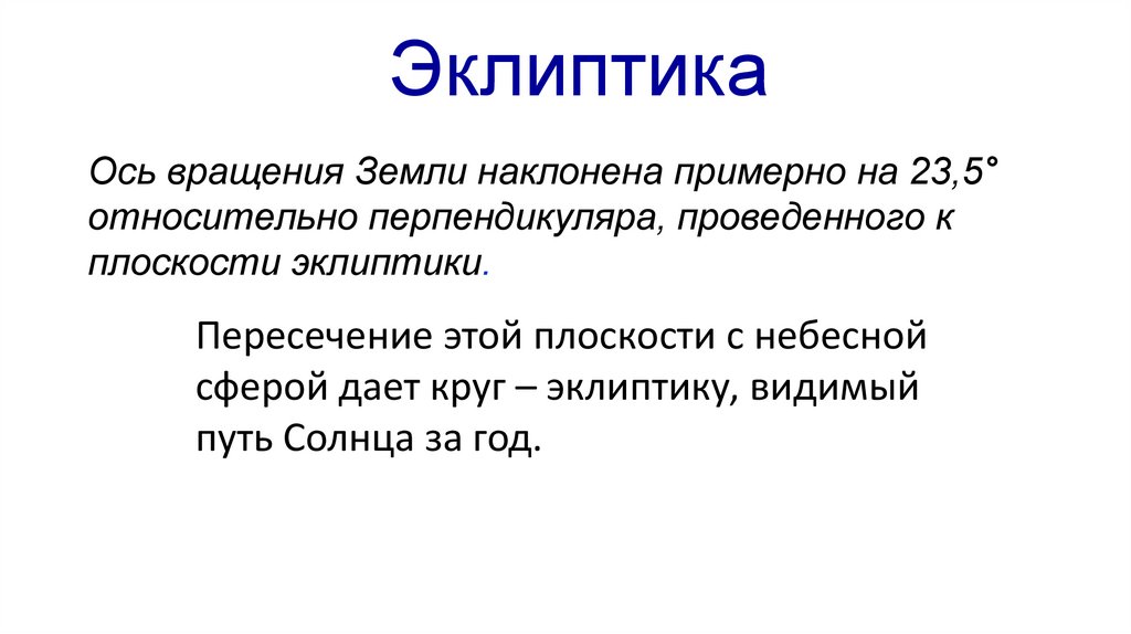 ЭклиптикаОсь вращения Земли наклонена примерно на 23,5°
