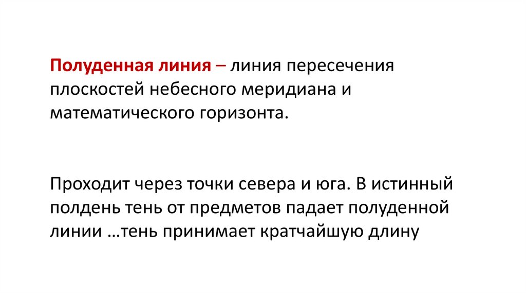 Полуденная линия – линия пересеченияплоскостей небесного меридиана и
