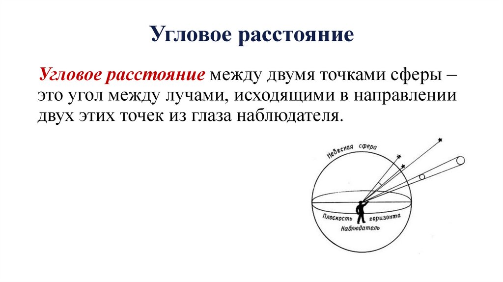 Угловое расстояниеУгловое расстояние между двумя точками сферы –