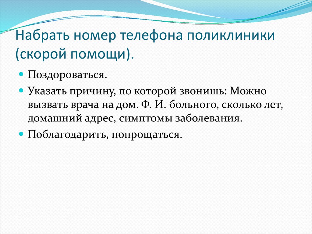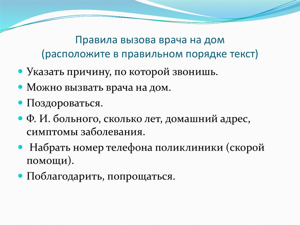 Правила вызова врача на дом(расположите в правильном порядке текст)