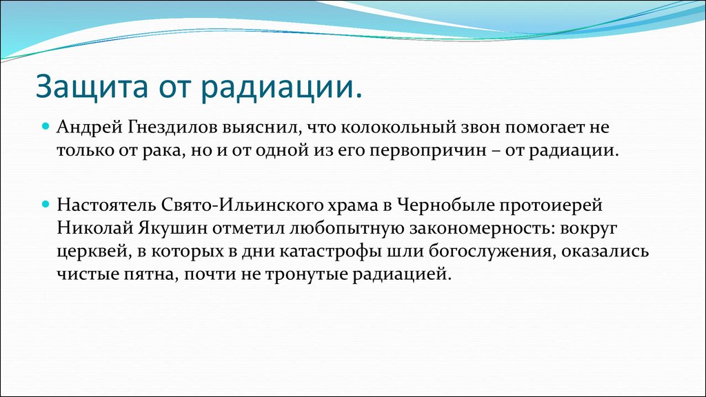 Андрей Гнездилов выяснил, что колокольный звон помогает нетолько от рака, но и от одной из его первопричин – от радиации.