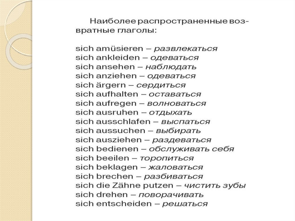Возвратные глаголы - это глаголы, у которыхобъект действия совпадает с субъектом: я
