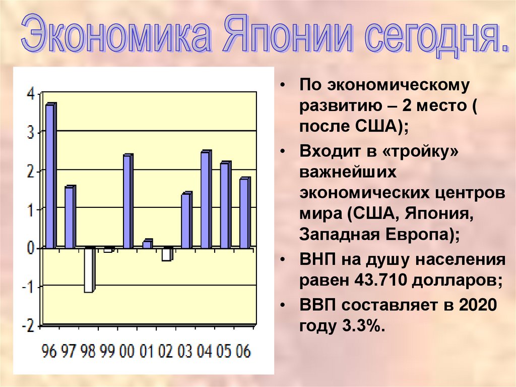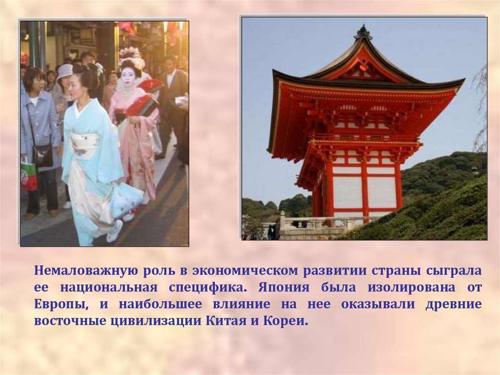 Немаловажную роль в экономическом развитии страны сыгралаее национальная специфика. Япония была изолирована от