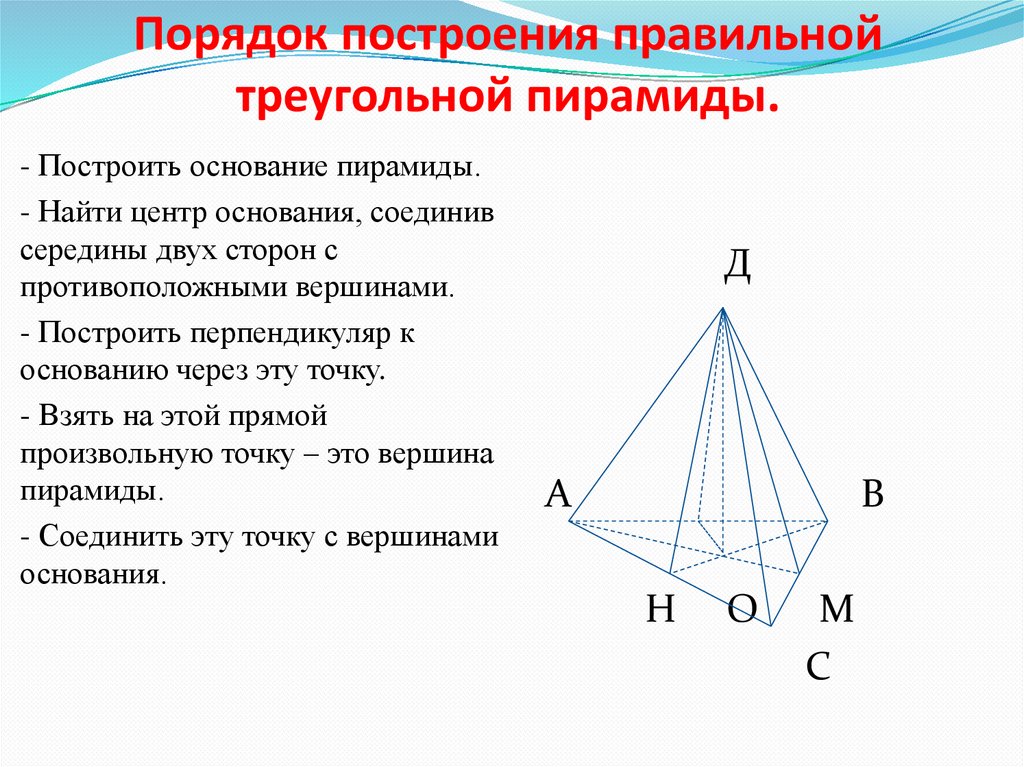 Порядок построения правильнойтреугольной пирамиды.