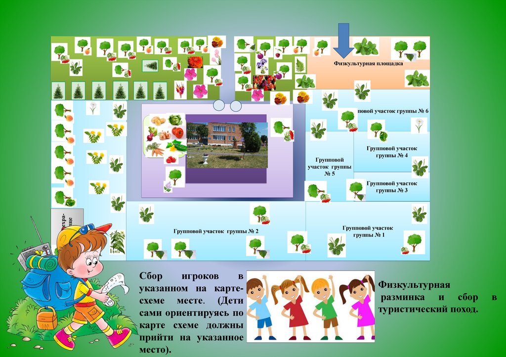 - Формировать у детей умение ориентироваться на местности по карте – схеме, определять направление