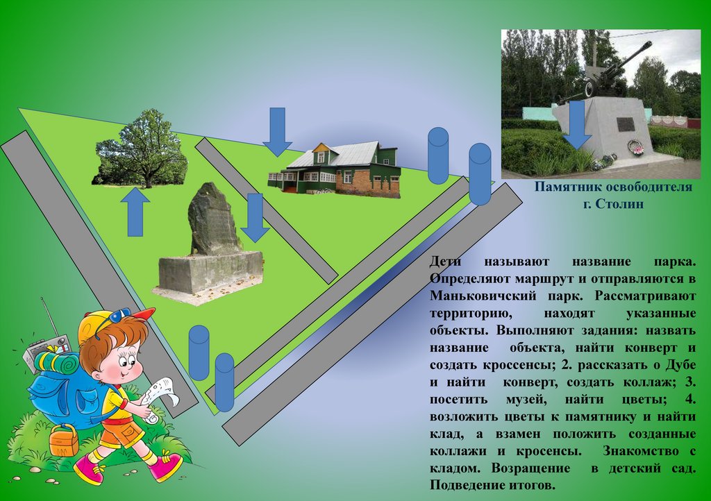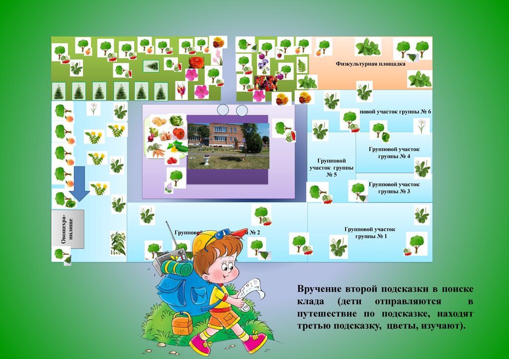 Дети его должны найти сами по картам-схемам и подсказкам. Однако подсказки они также должны найти