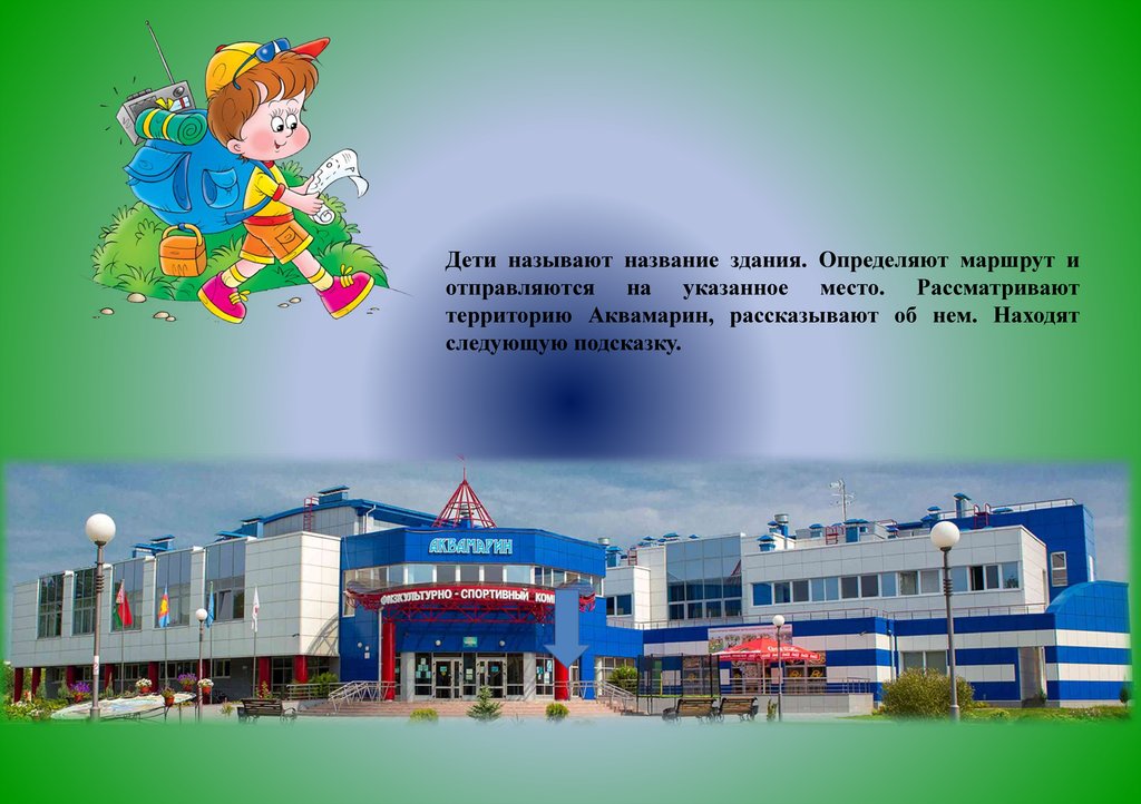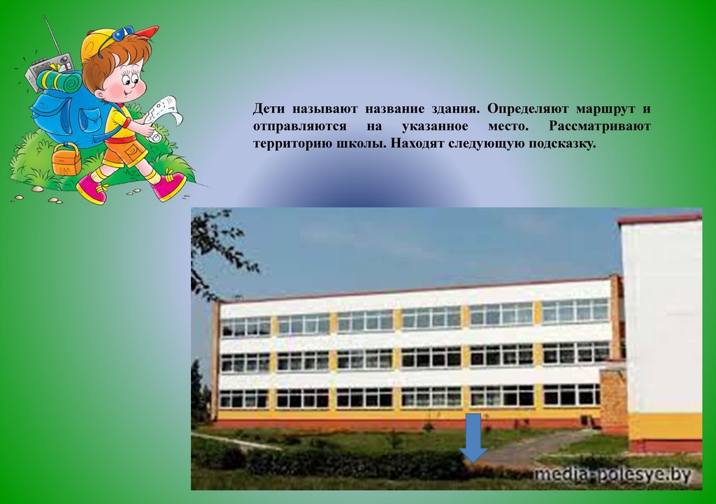 Дети называют название здания. Определяют маршрут иотправляются на указанное место. Рассматривают