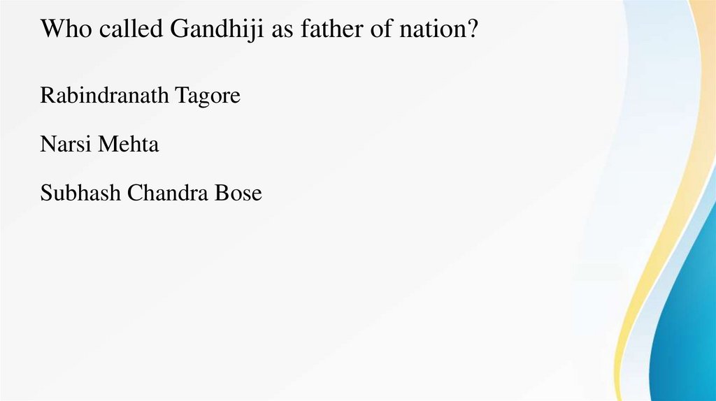 Who called Gandhiji as father of nation?Rabindranath Tagore