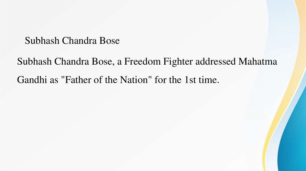 Subhash Chandra BoseSubhash Chandra Bose, a Freedom Fighter addressed Mahatma