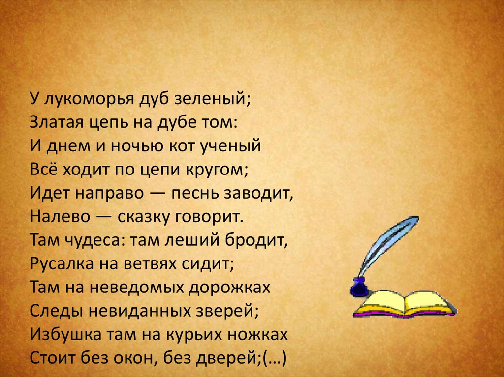У лукоморья дуб зеленый;Златая цепь на дубе том: