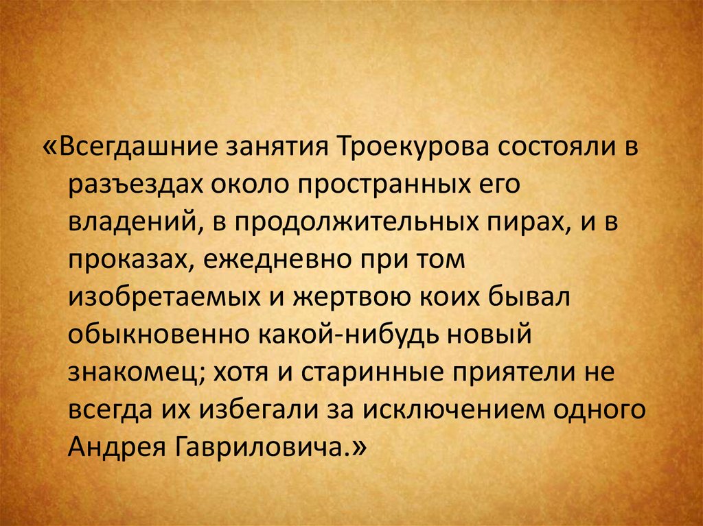 «Всегдашние занятия Троекурова состояли вразъездах около пространных его
