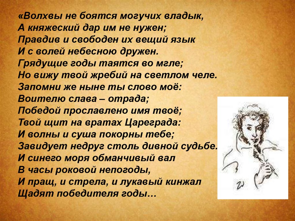 «Волхвы не боятся могучих владык,А княжеский дар им не нужен;