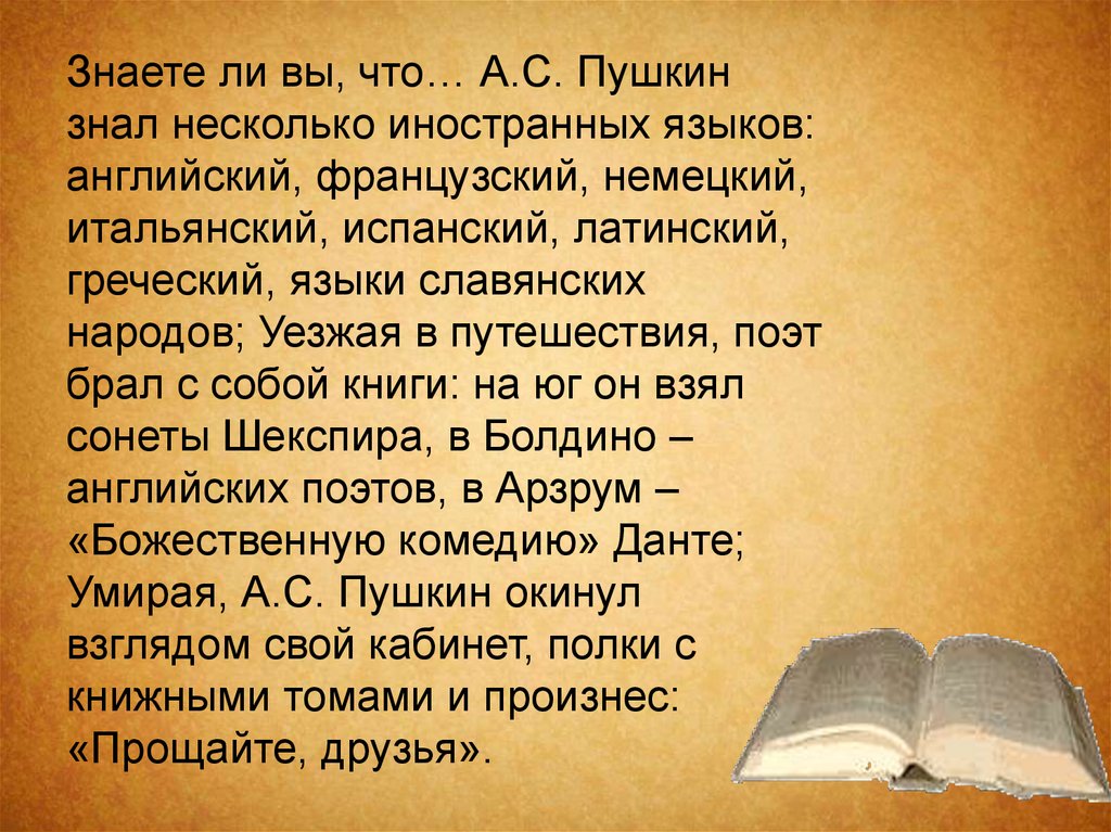 Знаете ли вы, что… А.С. Пушкинзнал несколько иностранных языков: