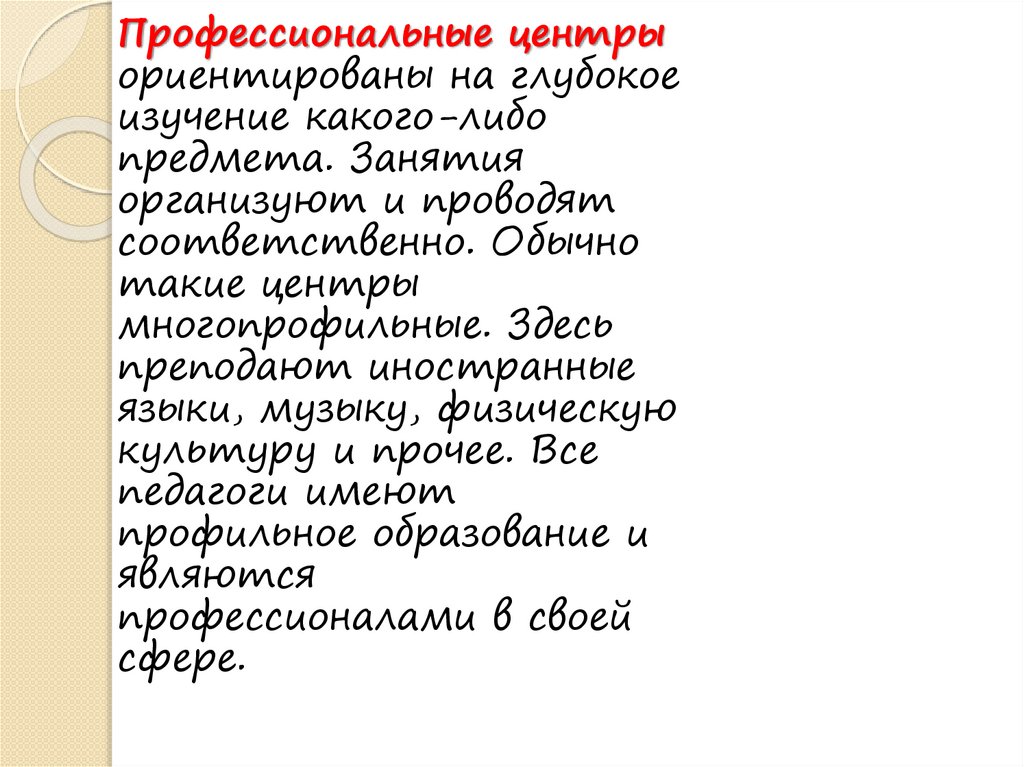 Профессиональные центрыориентированы на глубокое