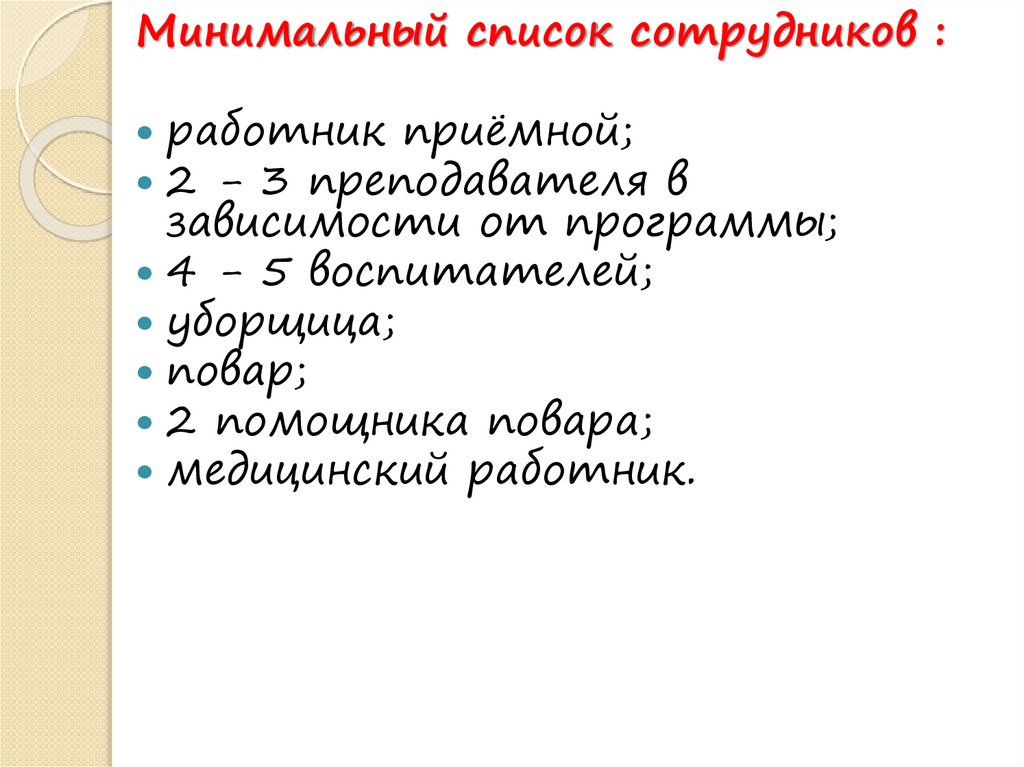Минимальный список сотрудников :работник приёмной;