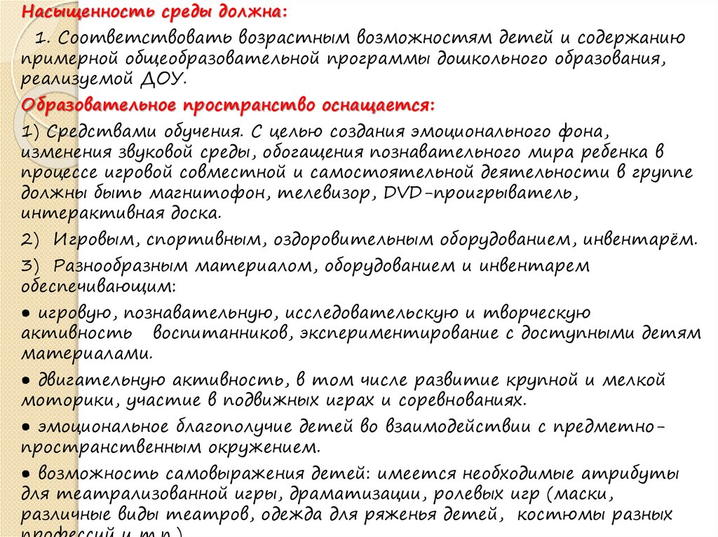 Насыщенность среды должна:1. Соответствовать возрастным возможностям детей и содержанию
